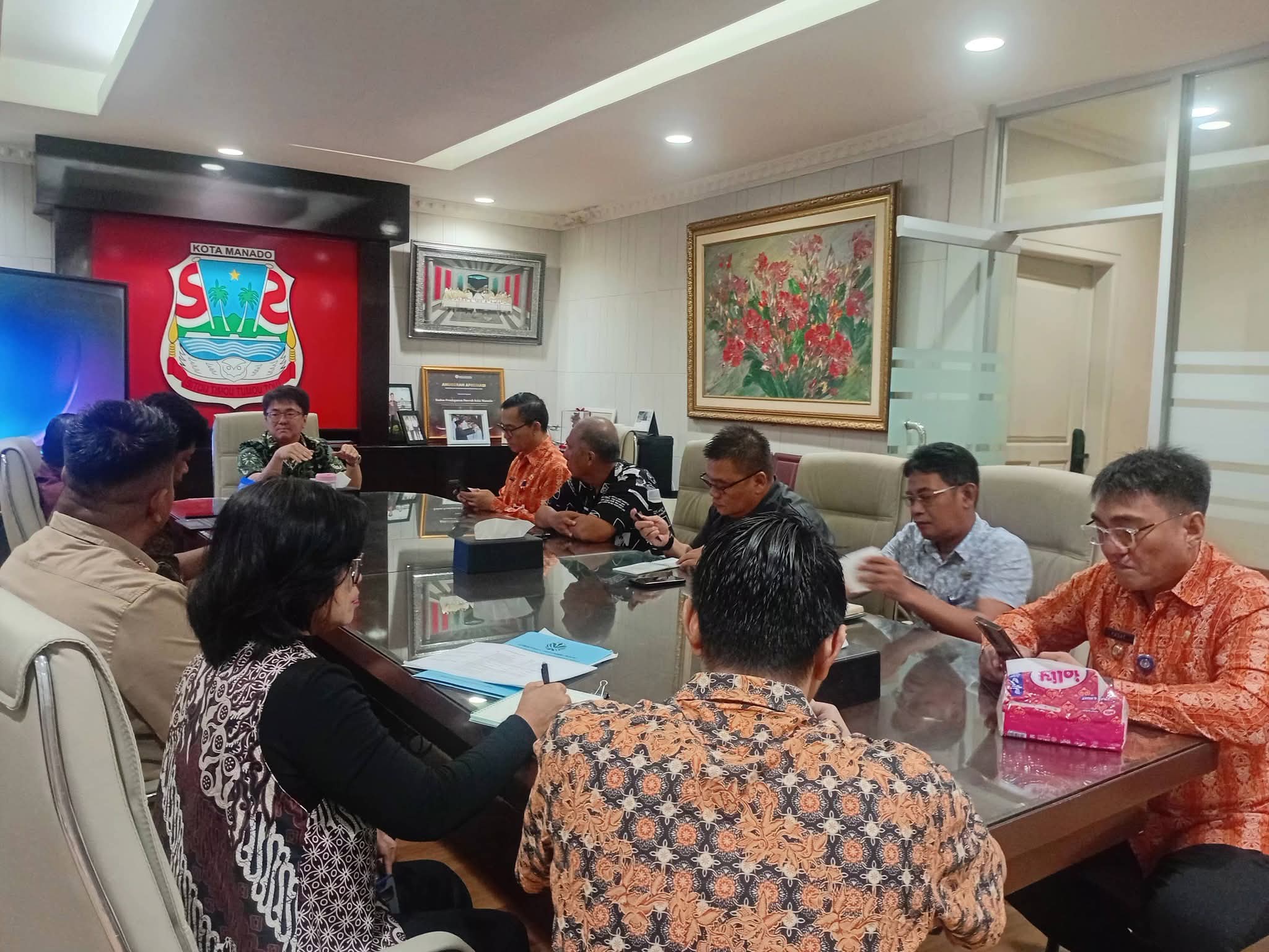 Turut hadir dalam rapat tersebut Sekot dr. Steaven Dandel, M.Ph, Asisten I Yulises Ochlers, Kadis Perhubungan Jeffry Worang, Kadis Lingkungan Hidup Pontowuisang Kakauhe, Sekdis Denny Sankaeng, serta para camat.