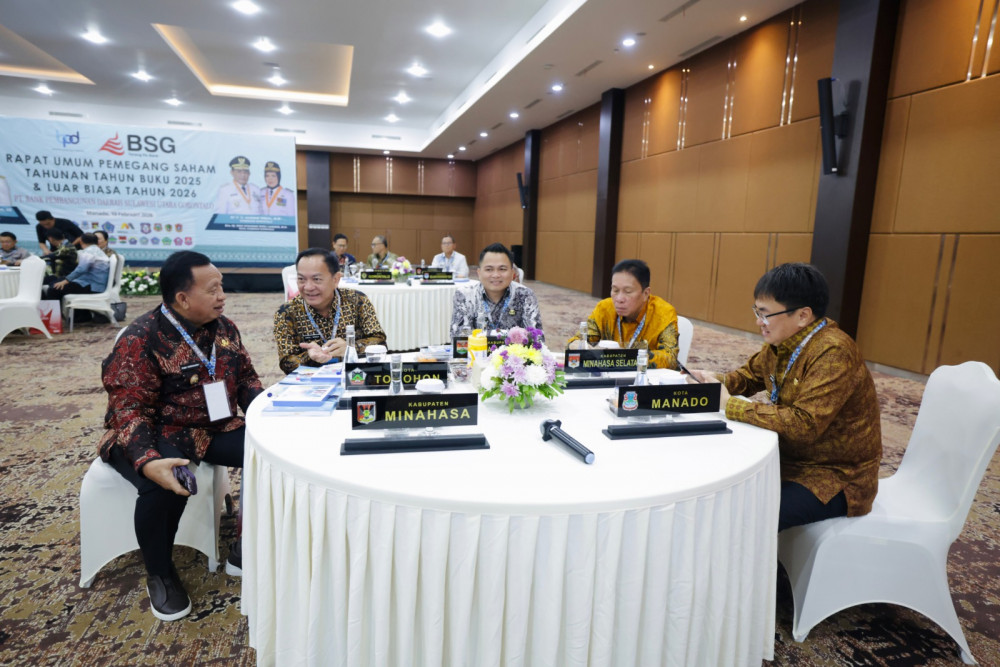 Wali Kota Manado, Andrei Angouw, mengikuti Rapat Umum Pemegang Saham (RUPS) Tahunan Tahun Buku 2025 serta Rapat Umum Pemegang Saham Luar Biasa (RUPS-LB) Tahun 2026 PT Bank Pembangunan Daerah Sulawesi Utara Gorontalo (Bank SulutGo) yang digelar di Ballroom Kantor Pusat Bank SulutGo.