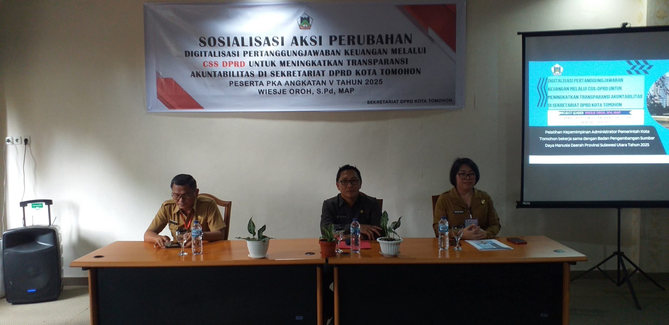 Tomohon — Sekretariat DPRD Kota Tomohon terus berinovasi dalam pengelolaan keuangan dengan menghadirkan Cashflow System (CSS) DPRD, sebuah sistem pertanggungjawaban keuangan berbasis digital. Program tersebut mulai diperkenalkan kepada jajaran staf Sekretariat DPRD, insan pers, serta masyarakat pada kegiatan sosialisasi di Kantor DPRD Tomohon, Selasa (14/10/2025).