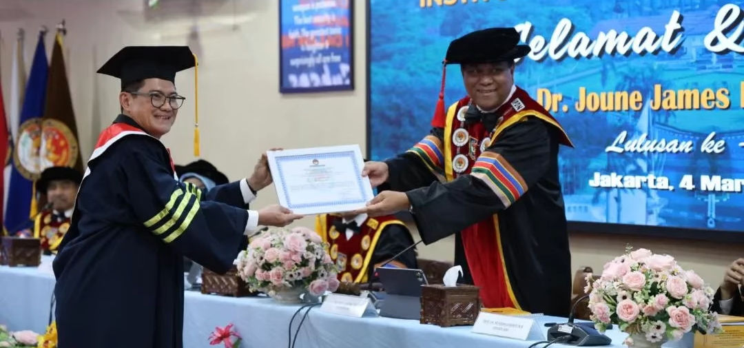 Edisibacirita – Bupati Minahasa, Robby Dondokambey, menghadiri Ujian Sidang Terbuka Program Doktor Ilmu Pemerintahan yang ditempuh oleh Joune James Esau Ganda, di Kampus Institut Pemerintahan Dalam Negeri (IPDN) Cilandak, Jakarta Selatan, Rabu (4/3/2026).