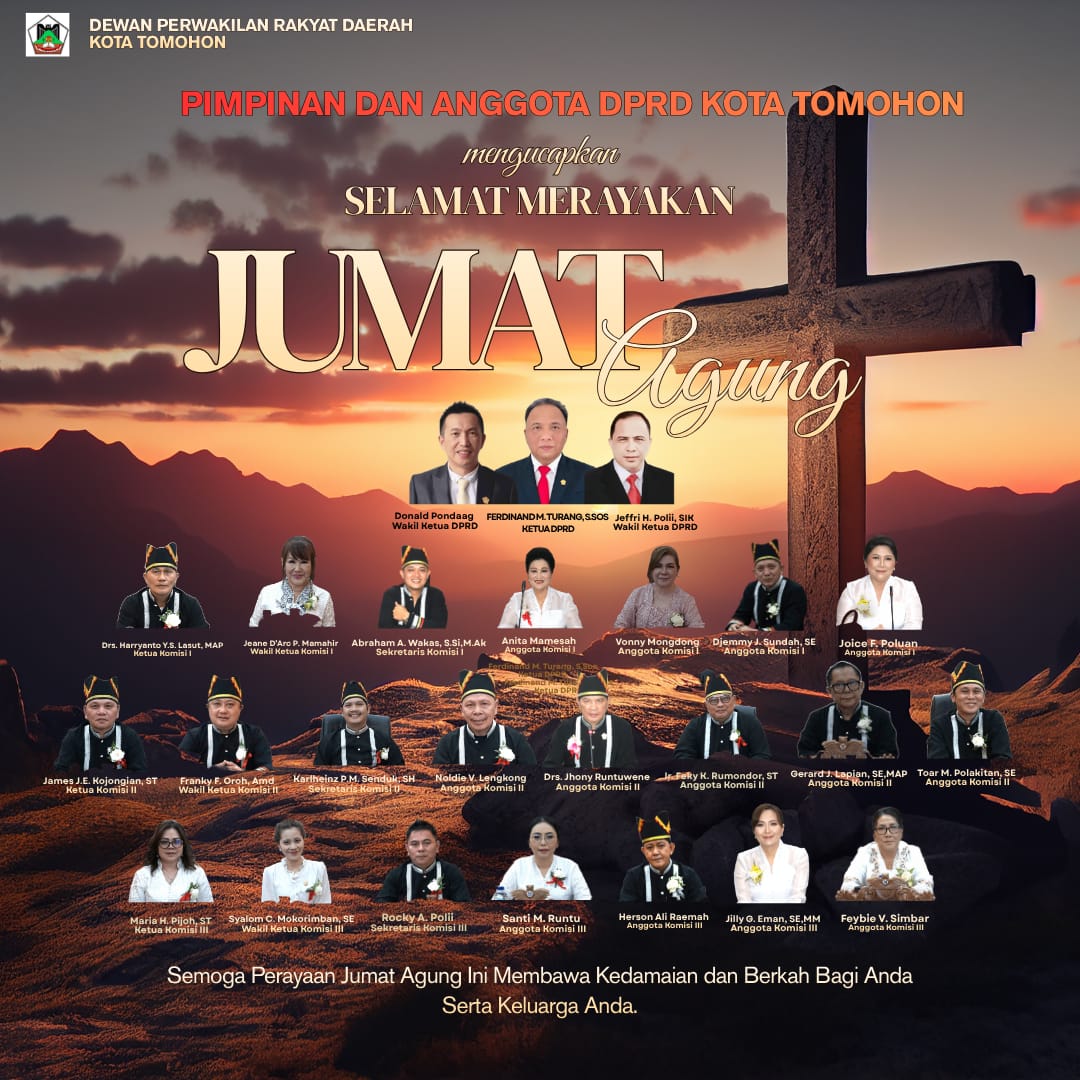 Edisibacirita — Ketua bersama seluruh pimpinan dan anggota DPRD Kota Tomohon menyampaikan ucapan Selamat Menghayati Jumat Agung kepada seluruh umat Kristiani di Tomohon.