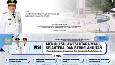 Edisibacirita – Aula Mapalus Kantor Gubernur menjadi saksi bisu dirumuskannya masa depan “Bumi Nyiur Melambai”. Pada Kamis (9/4/2026), Gubernur Sulawesi Utara, Mayjen TNI (Purn) Yulius Selvanus, secara resmi membuka Musyawarah Perencanaan Pembangunan (Musrenbang) RKPD 2027. Bukan sekadar rutinitas birokrasi, forum ini menjadi ajang peletakan fondasi transformasi ekonomi menuju target ambisius: pertumbuhan 8% pada 2029.