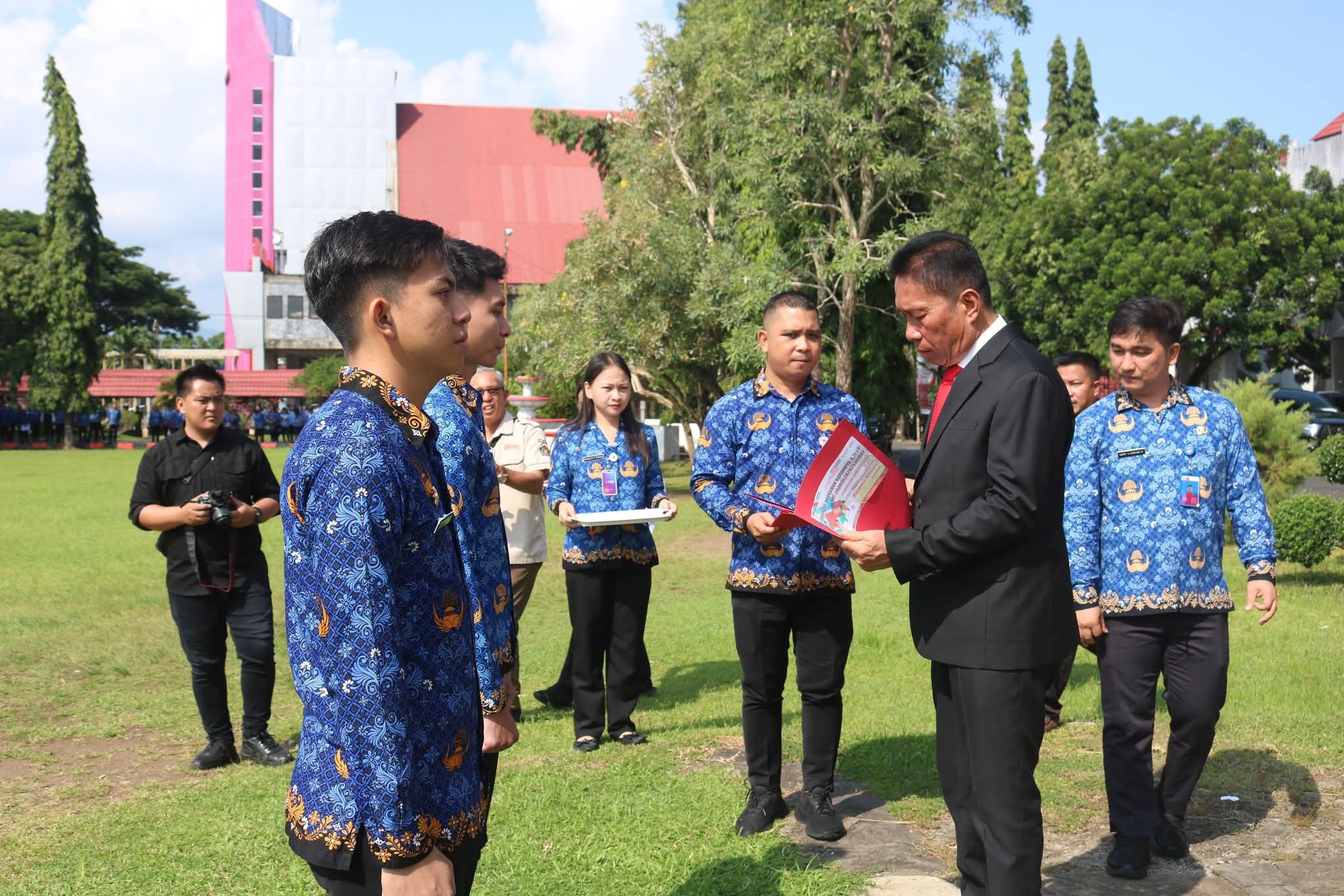 Minahasa Selatan – Bupati Minahasa Selatan Franky Donny Wongkar, SH, bersama Wakil Bupati Brigjen TNI (Purn) Theodorus Kawatu, SIP, menyerahkan Surat Keputusan (SK) Pengangkatan Calon Pegawai Negeri Sipil (CPNS) lulusan Institut Pemerintahan Dalam Negeri (IPDN) Tahun 2025 di lingkungan Pemerintah Kabupaten Minahasa Selatan.