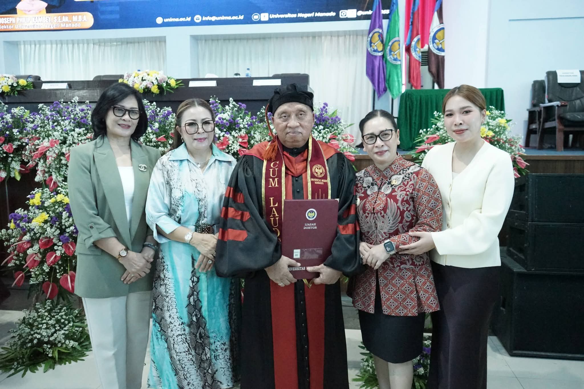 MINAHASA — Bupati Minahasa, Robby Dondokambey, resmi meraih gelar Doktor dengan predikat cum laude dalam Sidang Terbuka Senat Wisuda Semester Genap Tahap I Tahun Akademik 2025/2026 di Universitas Negeri Manado (Unima), Kamis (26/3/2026).
