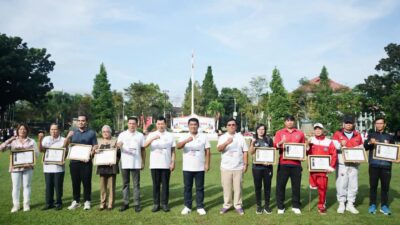 MANADO – Sorak sorai penonton pecah di Gelanggang Pacuan Balitka, Mapanget, Sabtu (23/8/2025). Dalam ajang Kejuaraan Pacuan Kuda Merdeka Cup memperebutkan Piala Bupati Minahasa Utara, kuda pacu Rambo 08 milik Gubernur Sulawesi Utara Yulius Selvanus Komaling (YSK) sukses meraih juara pertama di kelas Terbuka.
