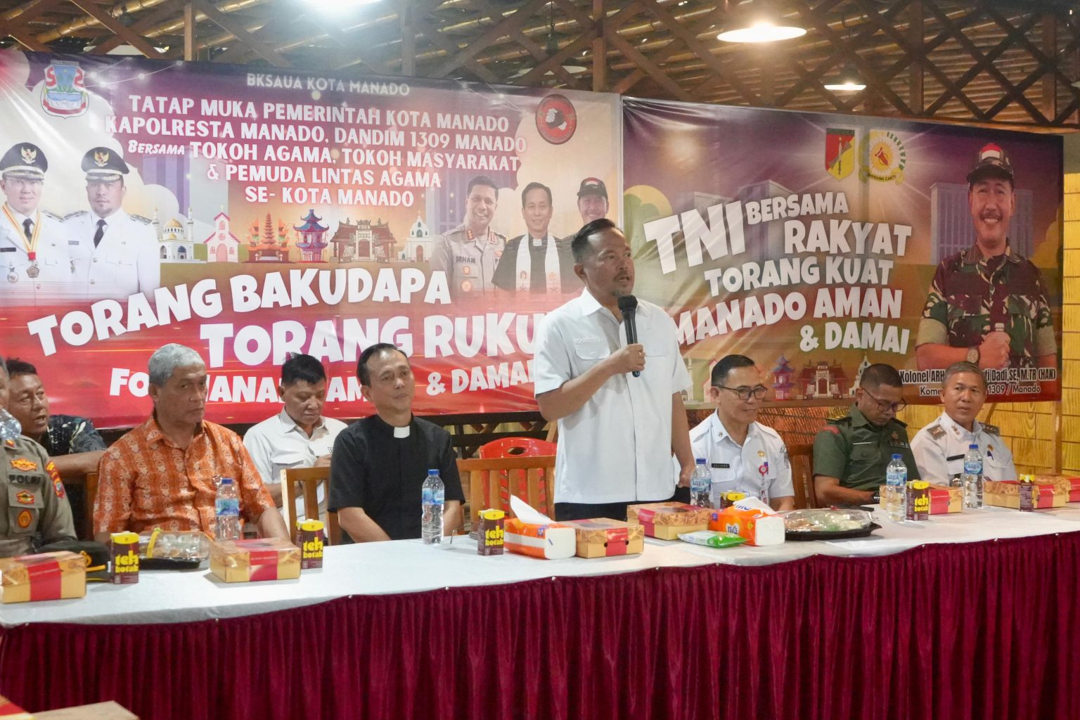 Pemerintah Kota Manado melalui Badan Kerja Sama Antar Umat Beragama (BKSAUA) menggelar pertemuan bersama tokoh agama, tokoh masyarakat, dan tokoh pemuda.