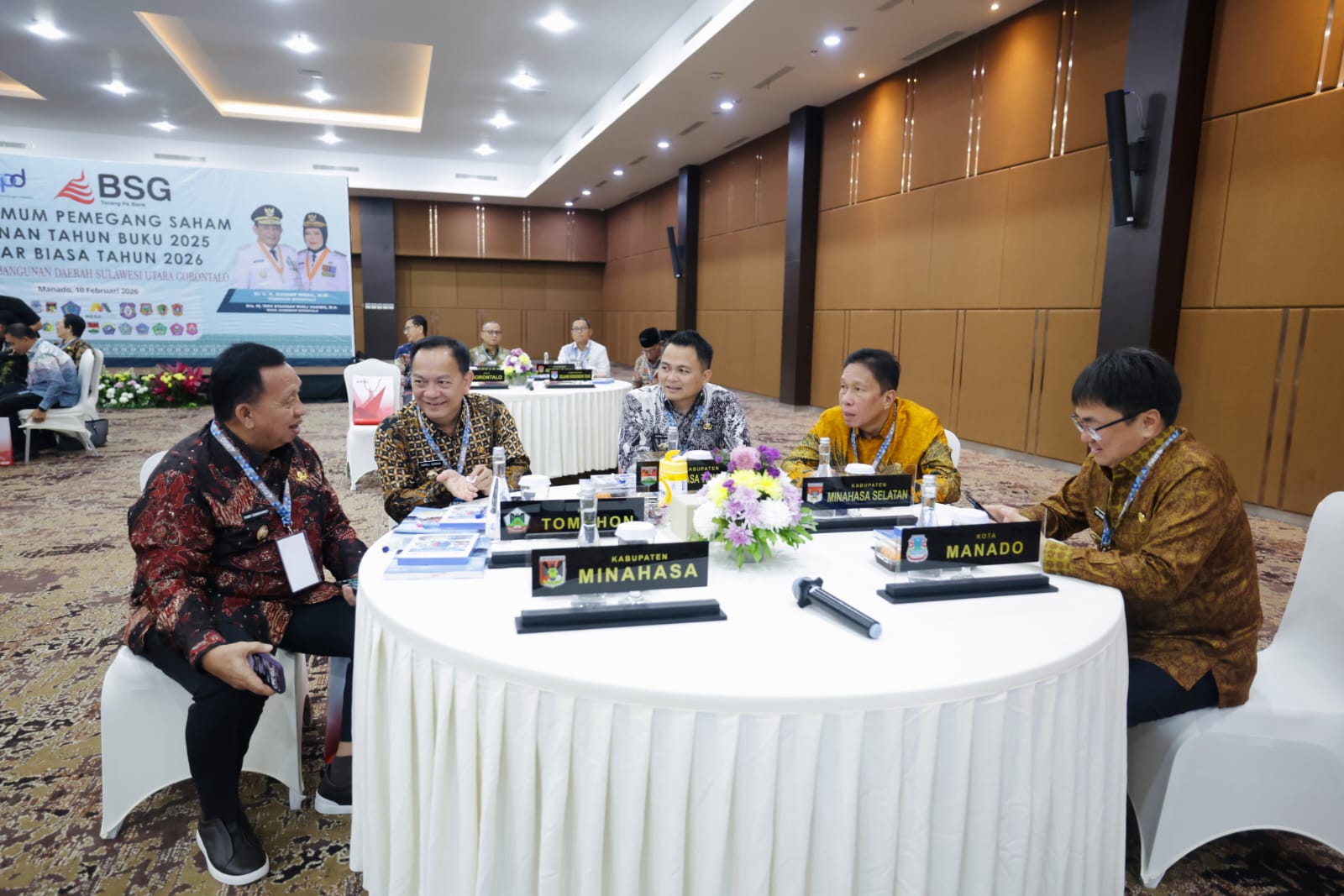 Bupati Minahasa Tenggara, Ronald Kandoli, menghadiri Rapat Umum Pemegang Saham (RUPS) Tahunan Tahun Buku 2025 serta Rapat Umum Pemegang Saham Luar Biasa (RUPS-LB) Tahun 2026 PT Bank Pembangunan Daerah Sulawesi Utara Gorontalo (BSG), Selasa (10/2/2026), bertempat di Kantor Pusat BSG, Manado.