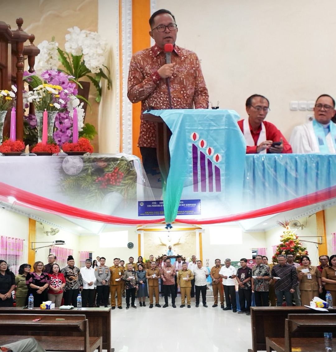Manado, Selasa 2 Desember 2025 — Wakil Wali Kota Manado, Richard Sualang, menghadiri Ibadah Safari Natal Pemerintah Kota Manado Tahun 2025 yang dilaksanakan di GMIM Sion Bailang, Kecamatan Bunaken.
