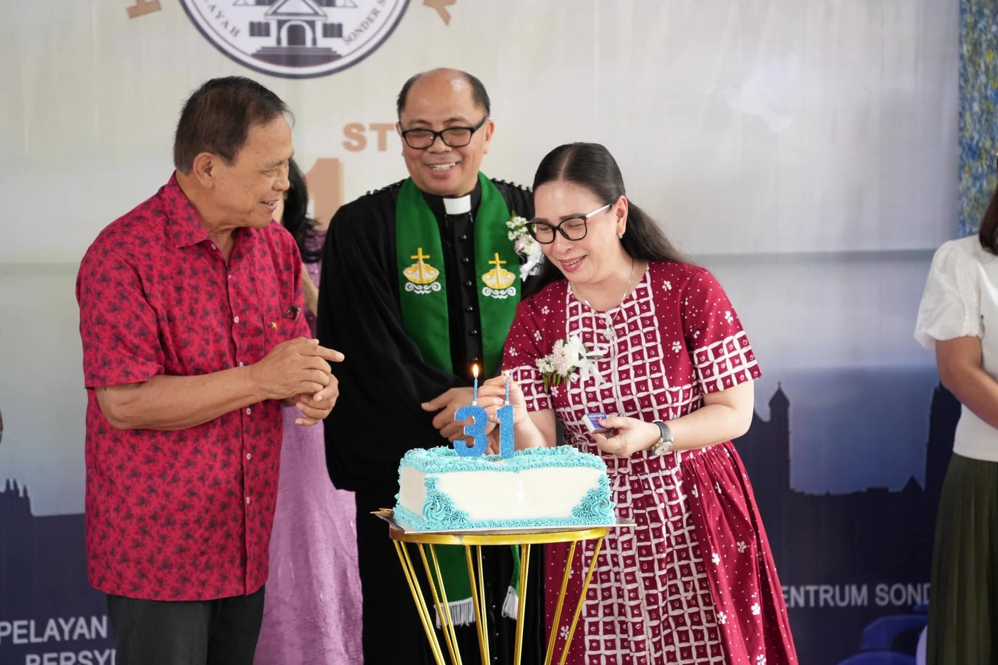 Ibadah syukur dipimpin oleh Ketua Badan Pekerja Majelis Sinode Gereja Masehi Injili di Minahasa, Pdt. Adolf Wenas, yang mengajak seluruh jemaat untuk mensyukuri penyertaan Tuhan dalam perjalanan pelayanan selama 31 tahun.