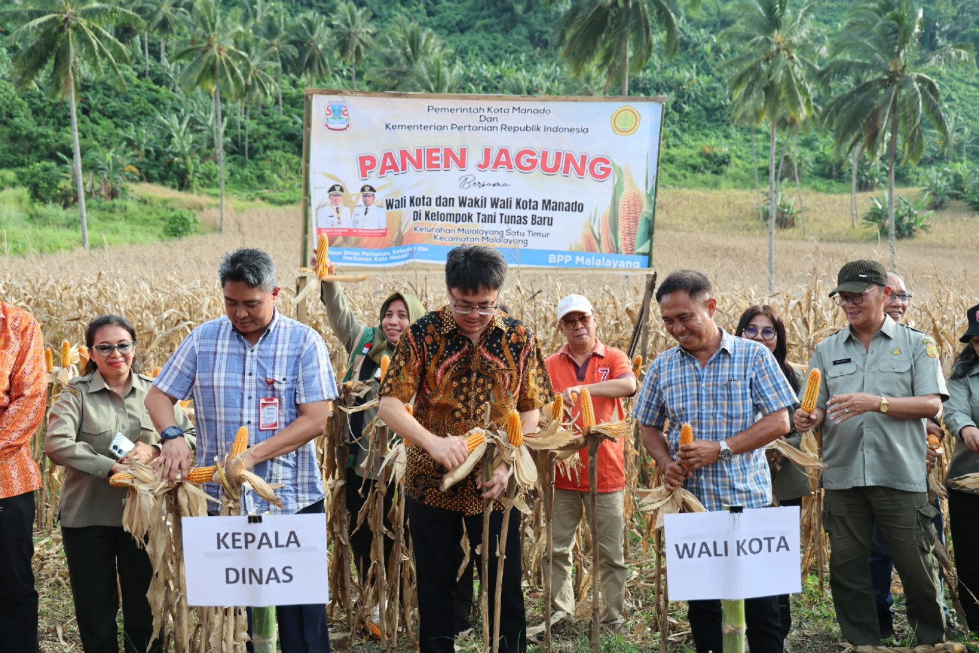 Manado — Dalam upaya berkelanjutan memperkuat kedaulatan pangan serta meningkatkan taraf ekonomi masyarakat agraris, Wali Kota Manado Andrei Angouw menghadiri kegiatan Panen Jagung Bersama di Kelompok Tani Tunas Baru, Kelurahan Malalayang Satu Timur, Kamis (5/2/2026).